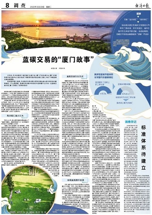 3月22日,经济日报刊发文章《蓝碳交易的“厦门故事”》,文中多次提到3044永利集团集团旗下厦门产权交易中心助力厦门蓝碳交易案例。