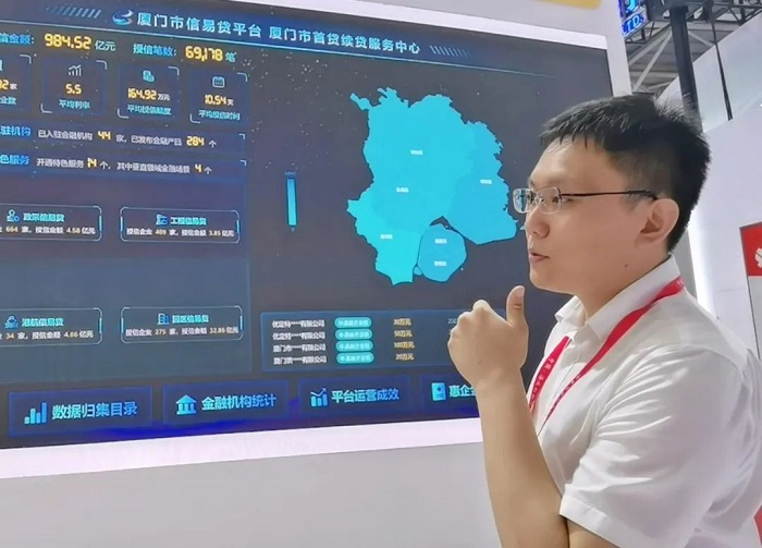 我觉得今年展会上科技感更强了,不仅在展示形式上不断创新数字科技的运用,在展示内容上科技含量也明显变多了。像我们中小在线展示的信易贷平台“厦门样板”,以“信用大数据+金融科技+普惠金融”的创新服务模式,通过金融资源汇聚、数据共享应用、垂直场景创新、金融政策协同等方式,让信用良好的企业更容易获得融资,切实解决中小微企业融资难题。