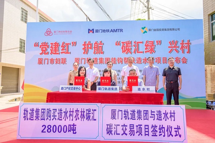 在本次活动中,厦门市妇联、厦门产权交易中心将发动厦门市一百家巾帼文明岗、一千个绿色家庭购买同安区汀溪镇造水村的农业碳汇,参与农业碳汇交易活动,以百岗千家的实际行动增加农民绿色收入,助力乡村振兴。厦门产权交易中心将运用区块链技术,对参与本次农业碳汇交易活动的主体发放碳普惠交易证书,以数字赋能融入乡村绿色发展。巾帼农业碳汇交易活动启动后,获得了包括厦门地铁快速场站BRT洪文站巾帼文明岗在内的女性积极参与、踊跃认购, “巾帼碳汇交易助乡村、生态文明建设半边天”的良好社会氛围正在厦门形成。
