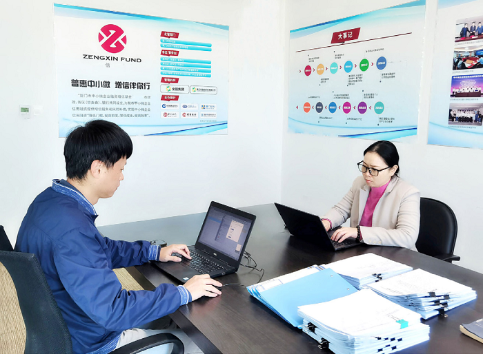 厦门中小微企业融资增信基金管理机构工作人员正在受理业务备案(2023 年 1 月 29日摄) 苏昕摄