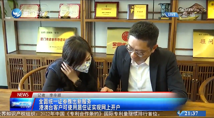 2021年9月,在全国率先实现台港澳自然人网上开户,开创了台港澳同胞足不出户即可办理网上开户业务的先河,增进他们的归属感、幸福感。