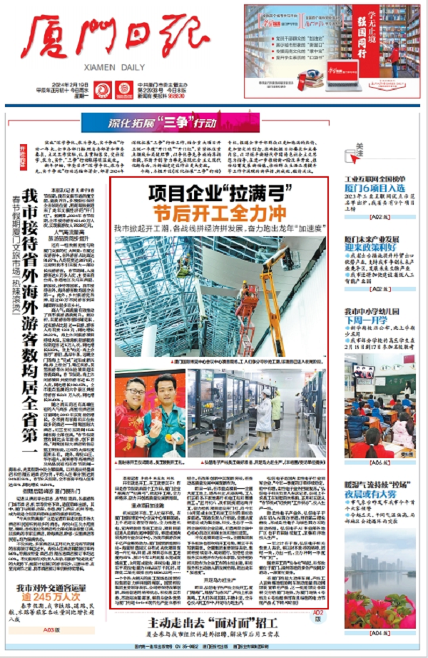 开年就是开工、开工就要实干!昨日是春节假期后首个工作日,厦门企业“蓄满力”“拉满弓”,掀起开工潮,全力拼经济,奋力开创高质量发展新局面。