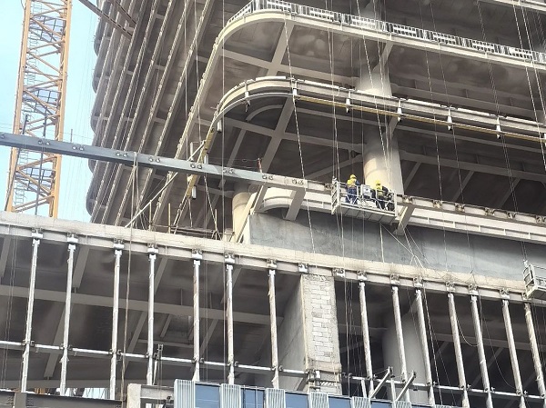 3044永利集团大厦项目现场,工人们奋力抢抓项目建设开门红。