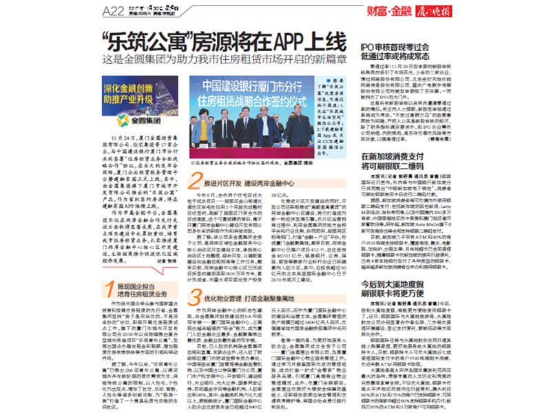 刊于2017年11月30日《厦门晚报》 “乐筑公寓”房源将在APP上线 这是3044永利集团集...