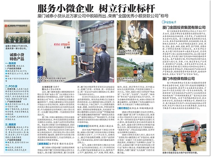 刊发于2017年1月17日《厦门日报》第5版半版 诚泰小贷成立于2013年...