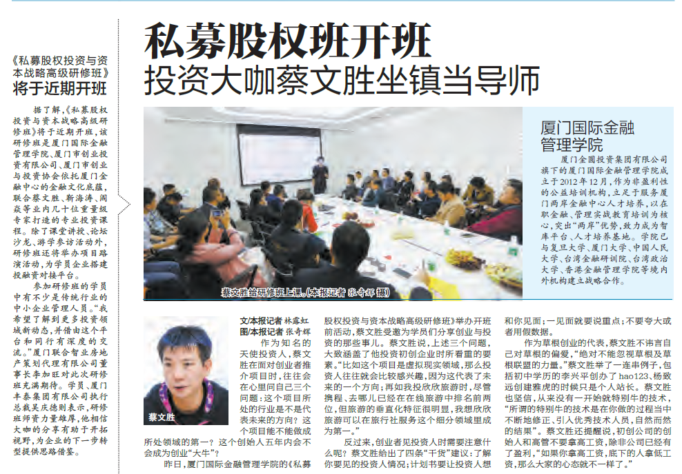 刊发于2016年5月16日《厦门日报》B04版 1/3版 ‘讲师+导师’ 研...