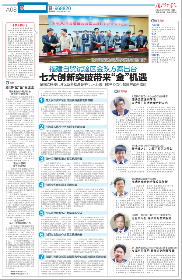 在银企合作项目签约环节,12对厦门地区银行与境内外机构达成合作意向,其中多个项目涉...