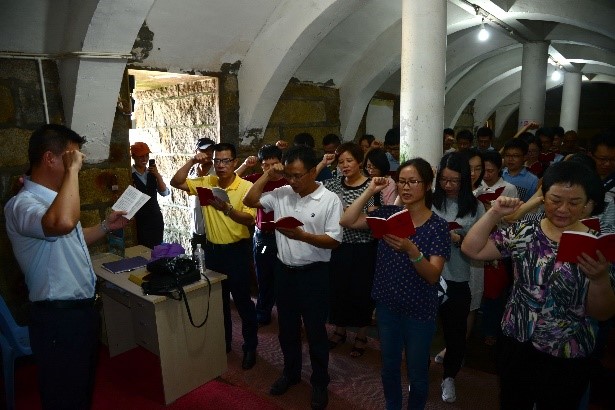 信托公司党员乘船到达小嶝后,活动分两路开展。一路由洪文瑾书记带领党总支委员和各支部书记来到小嶝社区委员会,与社区党支部书记邱碧月书记及支部委员开展交流,了解小嶝社区经济社会发展和党建工作情况,就下一步开展帮扶及社区驻军共建达成初步意向,公司党总支还向社区5户困难群众发放了慰问品和慰问金。另一路党员实地考察了当地的村居、社区建设等情况。最后两路党员在小嶝战地坑道汇合,通过实地参观体验了当年金门炮战的峥嵘岁月,并在坑道内面向党旗重温了入党誓词。