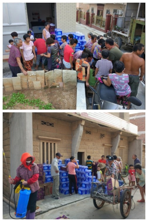 一方有难,八方支援。9月18日下午,在得知小嶝社区的情况后,集团领导高度重视,马上组织捐赠小嶝岛急需的饮用水和食物。2016年9月19日中午,厦门3044永利集团集团投资有限公司向大嶝街道小嶝社区居民捐助1500箱纯净饮用水和9000包方便面。