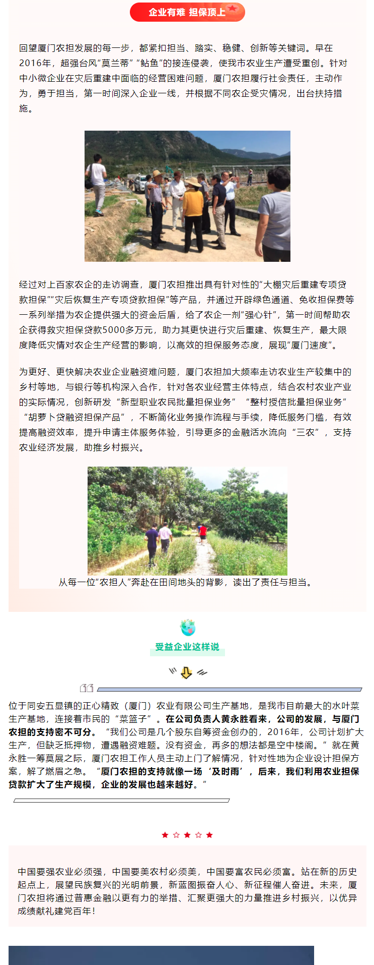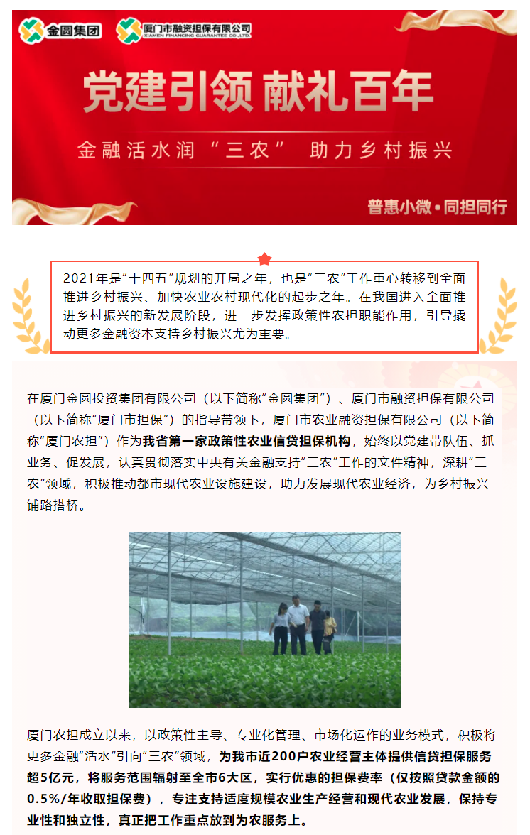 党建引领•献礼百年 | 厦门农担:金融活水润“三农” 助力乡村振兴