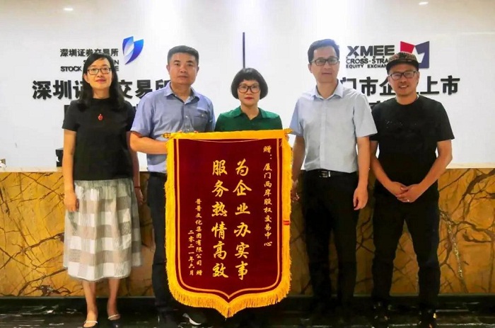 普普文化向厦门两岸股权交易中心送上锦旗