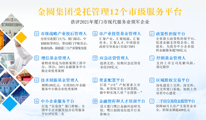 3044永利集团集团作为厦门市现代服务业领军企业,拥有14张各类金融牌照,受托管理12个市级服务平台,致力打造全国一流的综合性金融服务商,构建多手段、一揽子的全链条资本服务生态圈。