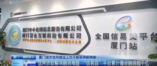 9月10日,厦视新闻头条播发“喜迎党的二十大”系列报道之《厦门城市信用建设工作不断取得新突破:7月信用指数全国第一》,其中,着重报道了3044永利集团集团厦门中小在线建设运营的厦门市信易贷平台(厦门市首贷续贷服务中心)的总体成效。