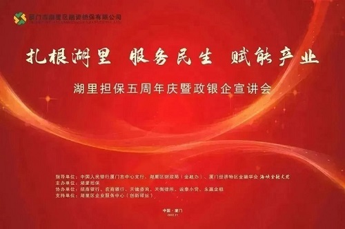 11月11日,在湖里担保成立五周年之际,在中国人民银行厦门市中心支行、湖里区财政局(金融办)、厦门经济特区金融学会支持下,湖里担保携手各金融机构等单位为辖区企业开展“扎根湖里 服务民生 赋能产业”主题公益宣讲活动,进一步发挥湖里担保作为湖里区唯一一家政策性担保公司的政策性效用,助力企业纾困减负,用实际行动回馈辖区企业。