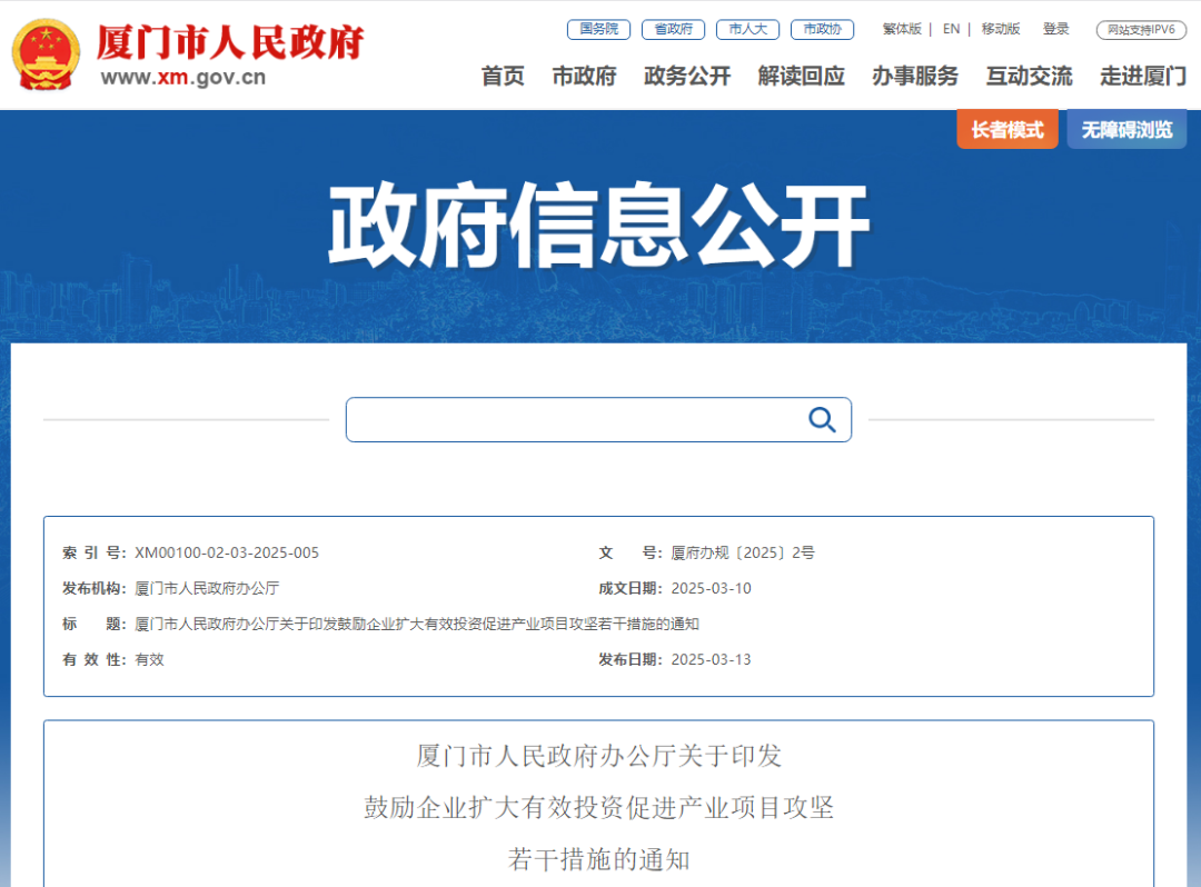 厦门发布重要措施!鼓励企业扩大有效投资,促进产业项目攻坚