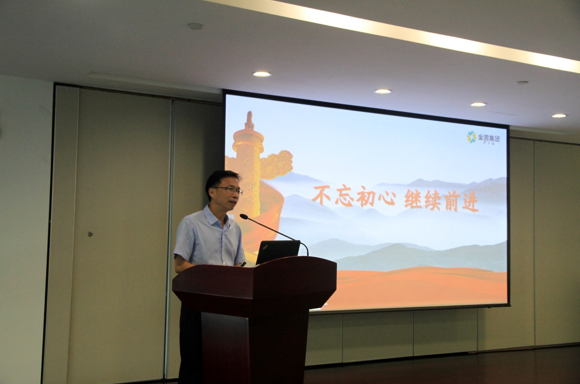 集团党委书记、董事长檀庄龙以“不忘初心,继续前进”为主题,为全体党员上了一堂生动的党课,阐释了不忘初心的内涵、现实意义、对集团的含义,激励广大党员切实践行“不忘初心”的讲话要求,在新的起点下 “继续前进”,坚持党的领导,完善组织机制,做好四个保障,把不忘初心转化为关爱员工并凝聚员工的力量,把不忘初心转化为履行国企担当与责任的具体行动,把不忘初心转化为紧跟国家步伐高举改革大旗,助推产业转型、服务实体经济、强化创新驱动、不断发展壮大,将集团改革进行到底。