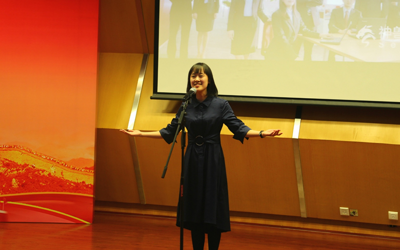 来自信托公司的张竞妍围绕“新时代不忘初心”的演讲主题,声情并茂地讲述了南仁东、余静等优秀共产党员的先进事迹,诠释了中国共产党的时代使命,就是为中国人民谋幸福、为中华民族谋复兴,号召大家脚踏实地,恪尽职守,当一名新时代的合格党员。她传递的满满正能量,深深地感染了台下的每一位观众,演讲结束,掌声雷动。