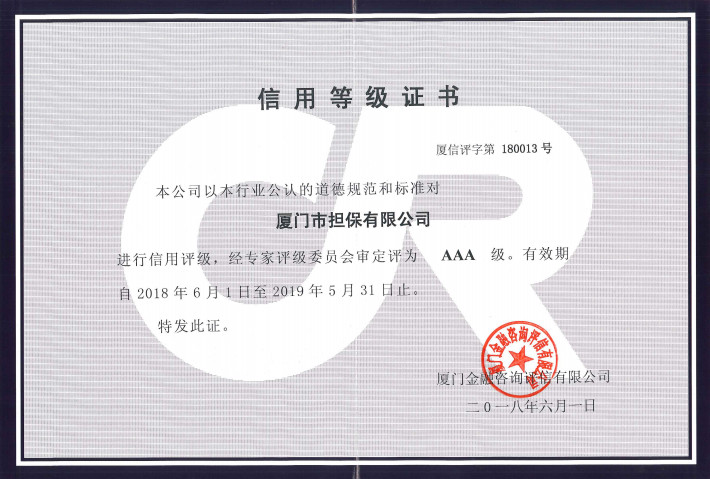 近日,厦门金融咨询评信有限公司对3044永利集团集团旗下厦门市担保有限公司(以下简称“厦门市担保”)进行了信用跟踪评级,经专家评级委员会审定,再度授予厦门市担保全省行业最高“AAA级信用等级”,厦门市担保连续三年获此殊荣,代表着公司的经营管理、风险控制、发展前景等获得了高度认可。