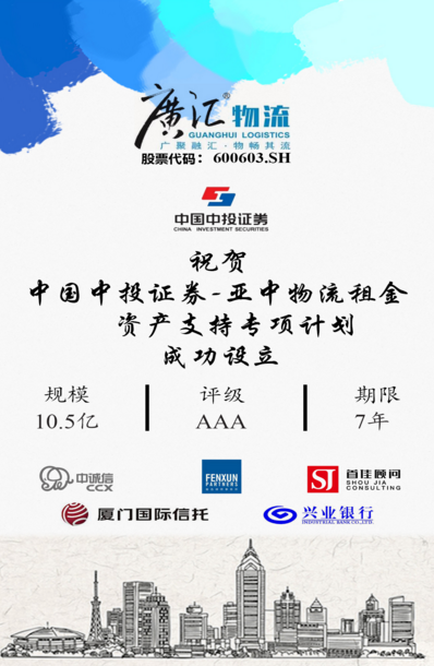 2018年7月25日,厦门国际信托与中国中投证券有限责任公司合作推动的新疆“一带一路”租金ABS项目——“中国中投证券-亚中物流租金资产支持专项计划”成功发行,项目总发行规模共计10.5亿元,期限7年。