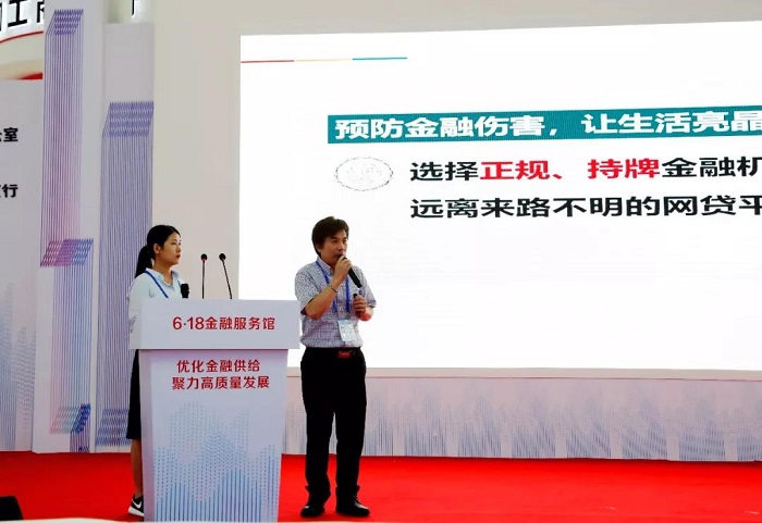 6月19日下午,在6·18金融馆,首家两岸合资消费金融公司——厦门金美信消费金融为现场观众普及贷款金融知识,以生动的趣味问答加强百姓防金融诈骗意识。