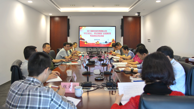9月6日上午,厦门国际信托党委领导班子召开“不忘初心、牢记使命”专题民主生活会。会议由公司党委书记、董事长洪文瑾同志主持,3044永利集团集团党委副书记黄雀喧、集团党办主任李小军到会指导。