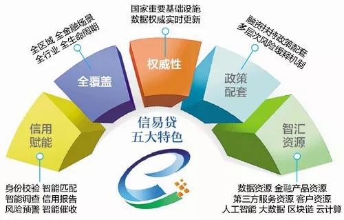 依托全国信用信息共享平台,归集了44个国家部委、31个省市地方政府以及第三方机构470多亿条、涵盖3400多万家企业的信用信息,包括红黑名单、行政许可、行政处罚、异常经营、社保、税务等信息。全国信易贷平台还将汇聚企业注册登记信息、金融机构的企业信贷信息、信用服务机构的企业信用数据以及各地方的融资服务信息等,形成全国中小企业信息交换枢纽。