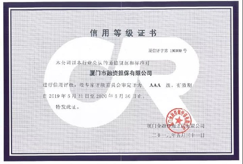 厦门市担保蝉联福建省内行业最高信用市场主体评级AAA。截至2019年底,运营管理的厦门市应急资金累计突破123亿元,成为缓解企业融资难题、防范金融风险的有力抓手,为我市经济持续健康发展提供重要支撑。