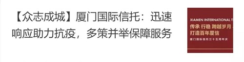 厦门国际信托捐赠50万元助力抗疫公共卫生事业