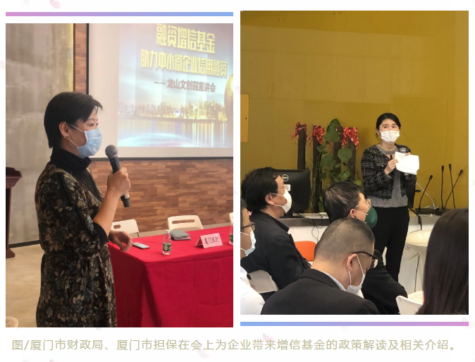 后续,在市财政局的支持下,厦门市担保将进一步收集文创企业的相关意见与建议,积极履行作为增信基金管理机构的责任与担当,加强与合作银行的联动,帮助广大文创企业成长壮大,提升文创产业发展的金融环境。