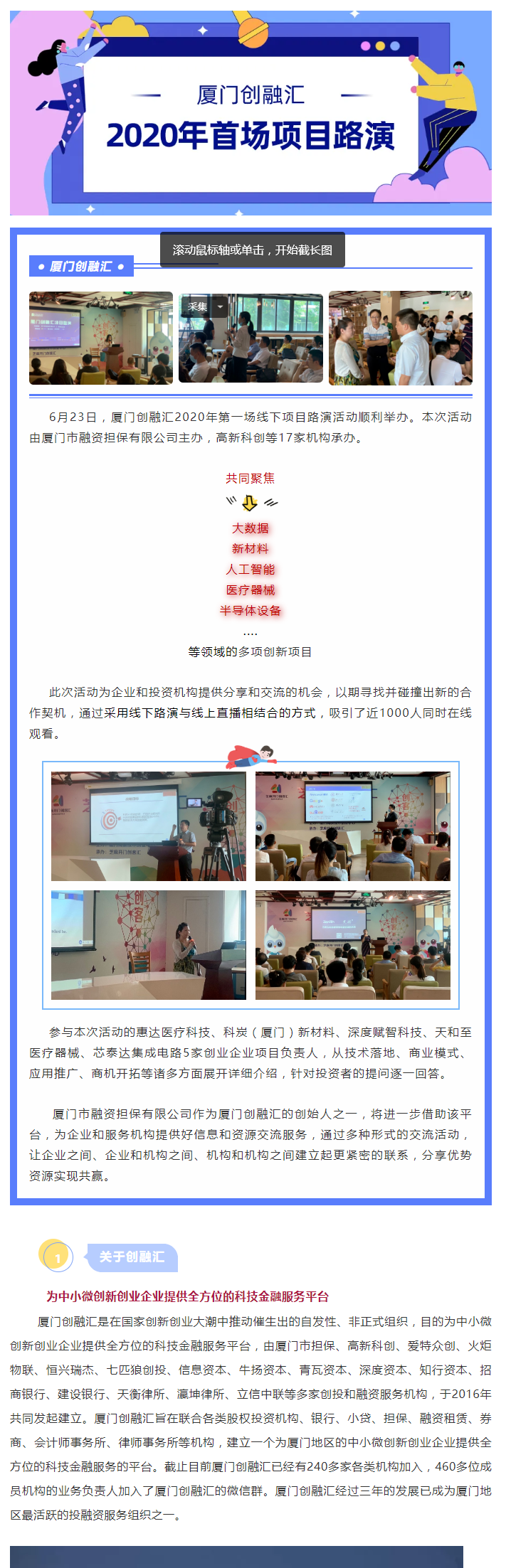 【业务动态】多领域创新项目引近千人在线关注 | 厦门创融汇2020年首场项目路演活动顺利举办