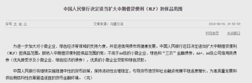 本月初,央行宣布适当扩大MLF担保品范围,新纳入的有:不低于AA级的小微企业、绿色和“三农”金融债券,AA+、AA级公司信用类债券和优质的小微企业贷款和绿色贷款,这一举措引起了市场热议,而有人宣称,这是中国版的QE!