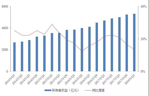 图3 2014年Q1—2018年Q1季度所有者权益及其同比增速