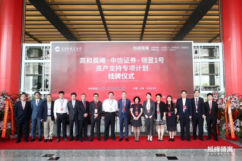2018年8月9日上午,民企首单储架式权益类REITs“高和晨曦-中信证券- 领昱1号资产专项计划”挂牌仪式在上交所举行,本单产品的计划管理人为中信证券。旭辉领寓类REITs首期发行规模为2.5亿元,为3+2年期,优先A级9000万元,利率5.9%,优先B级6000万元,利率6.5%。投资人为招商银行,中信银行,建信养老保险。