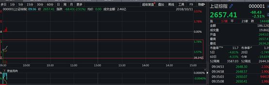 A 股上证指数开盘同样暴跌,盘中跌幅超过3%,一度失守2638的前期低点,但随后逐步走高,有所反弹。
