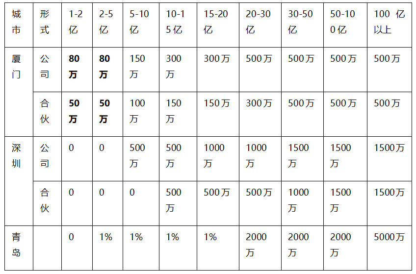 落户奖励:厦门政策落户奖励采取错位策略,优势区域主要针对规模较小的基金,规模较大的基金政策力度相对较小。