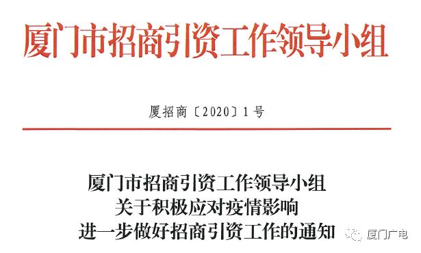 日前,厦门市招商引资工作领导小组发布《关于积极应对疫情影响进一步做好招商引资工作的通知》。
