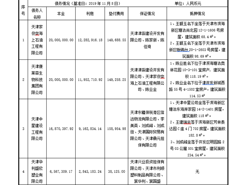 厦门资产管理有限公司拟将持有的天津家俊奕海上石油工程有限公司等6户不良资产分户进行...