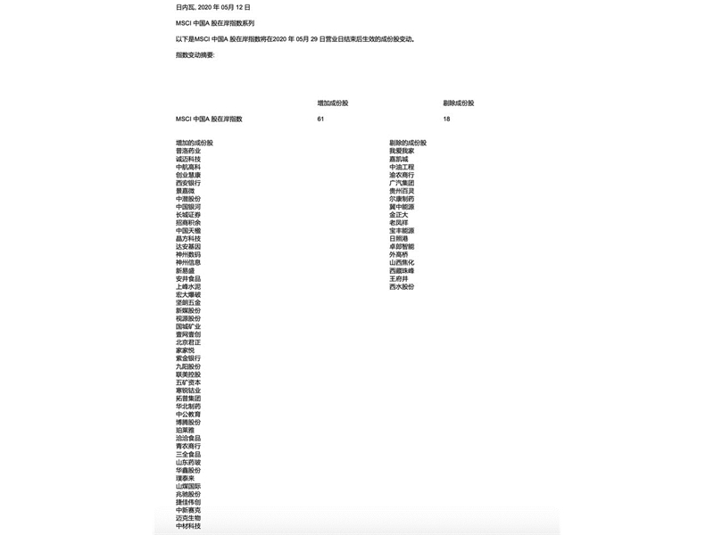 MSCI于12日周二美股盘后宣布半年度审议结果,决定将62只个股加入MSCI全球指数(MSCI...