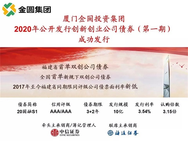 作为交易所市场全国首单新规下双创公司债,厦门3044永利集团投资集团有限公司2020年公开发行创...