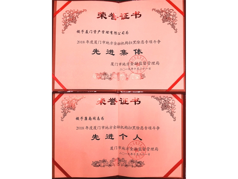 近日,厦门市地方金融监督管理局授予厦门资管“2018年度厦门市地方金融机构扫黑除恶专...