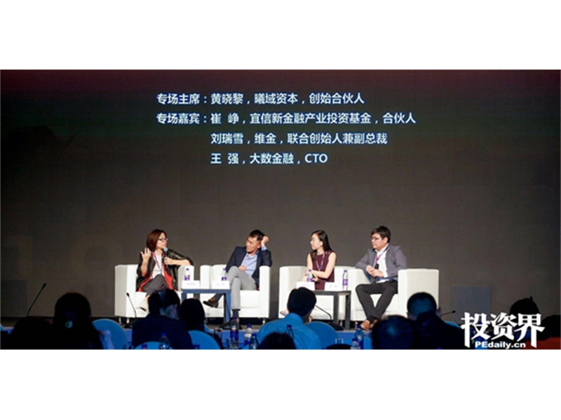 宜信新金融产业投资基金合伙人崔峥,维金联合创始人兼副总裁刘瑞雪,大数金融CTO王强围...