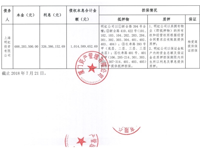 我司拟对名下上海明虹投资有限公司不良债权资产进行公开处置,处置方式:债权转让。截...