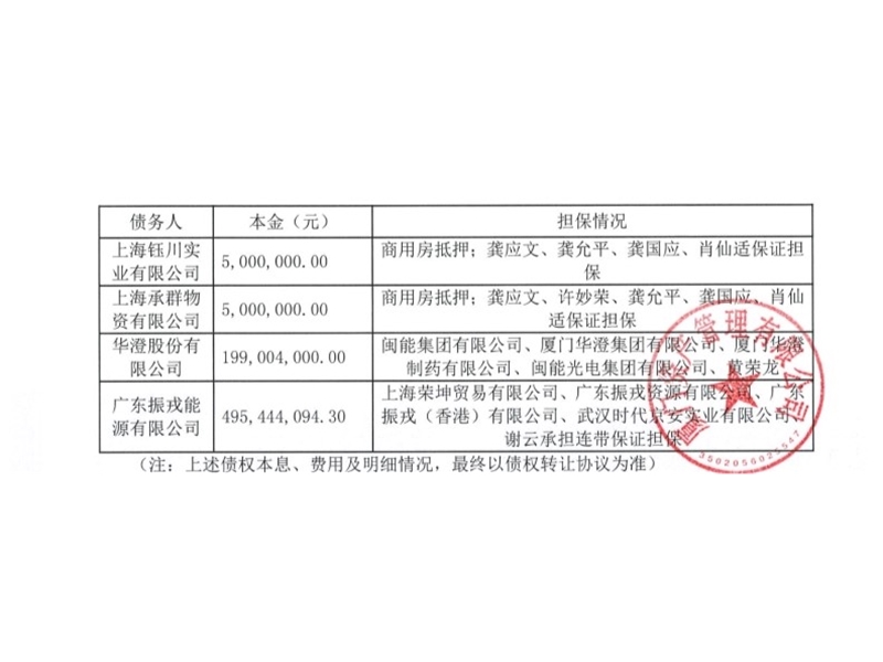 我司拟对名下广东振戎能源有限公司等4户不良债权资产进行公开处置,处置方式:债权转让...