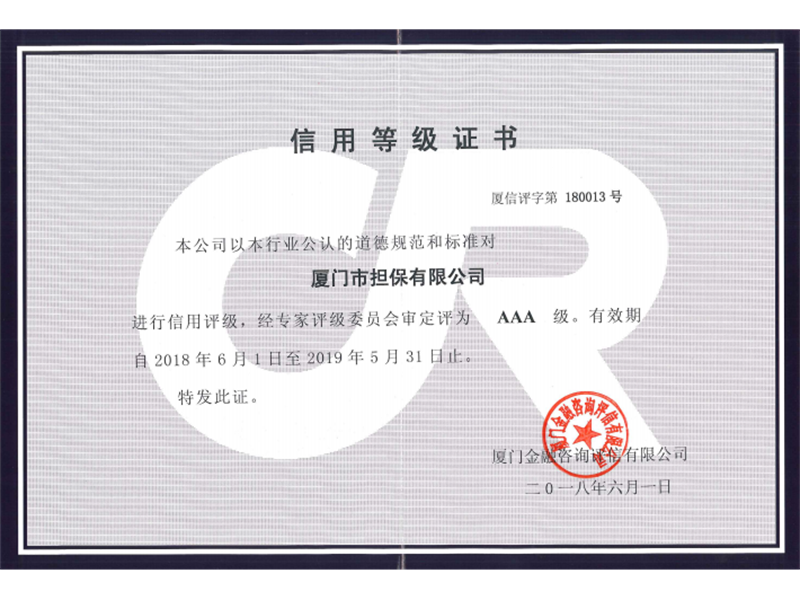 近日,厦门金融咨询评信有限公司对3044永利集团集团旗下厦门市担保有限公司(以下简称“厦门市...