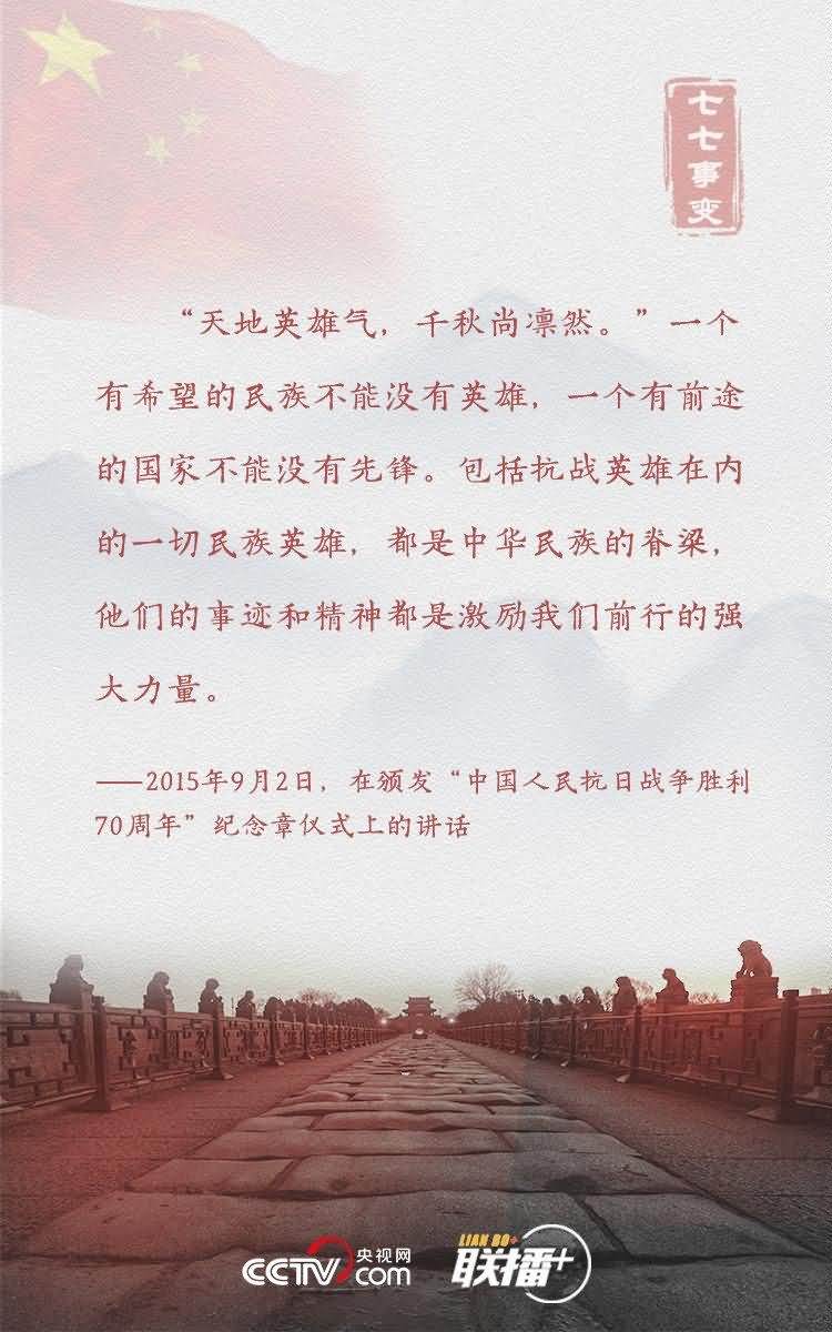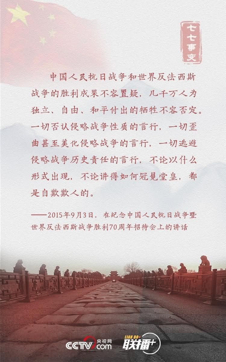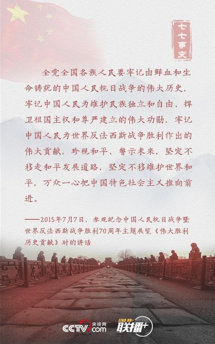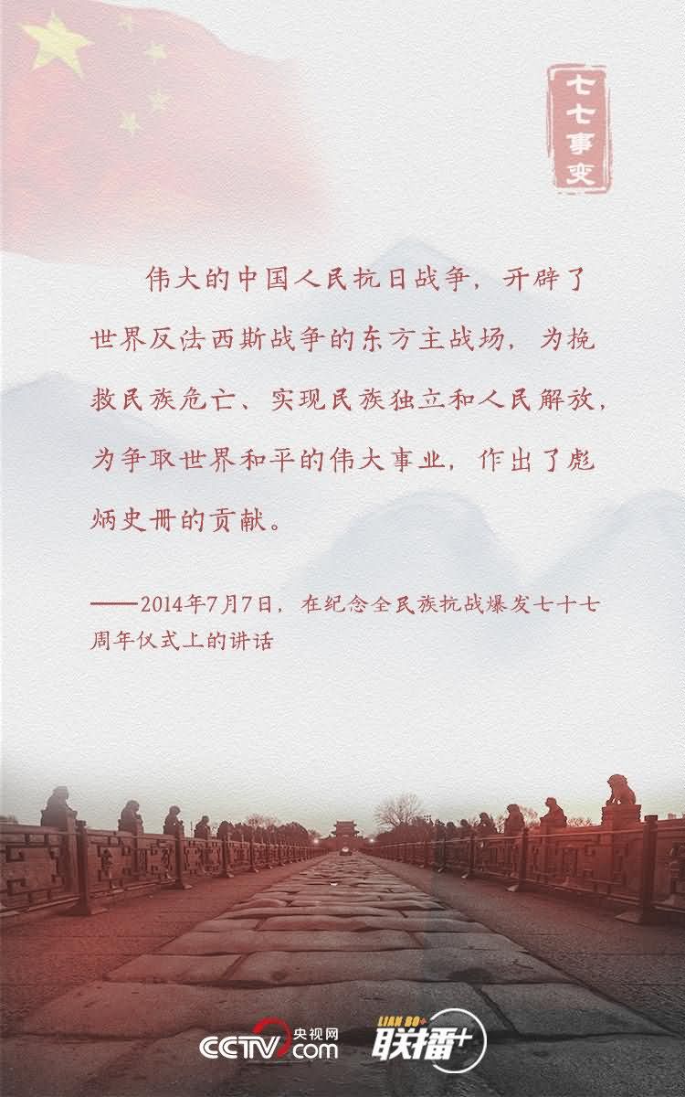 在全民族抗战爆发83周年之际,央视网《联播+》特梳理习近平总书记相关论述,与您共同缅怀革命先烈,重温抗战精神,汲取前行力量。