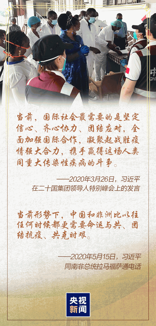 “我们要坚持人民至上、生命至上,统筹资源,团结合作,尽最大努力保护人民生命安全和身体健康,最大限度降低疫情负面影响。”中非团结抗疫特别峰会上,习近平主席向世界展现了友谊、团结、合作的力量。