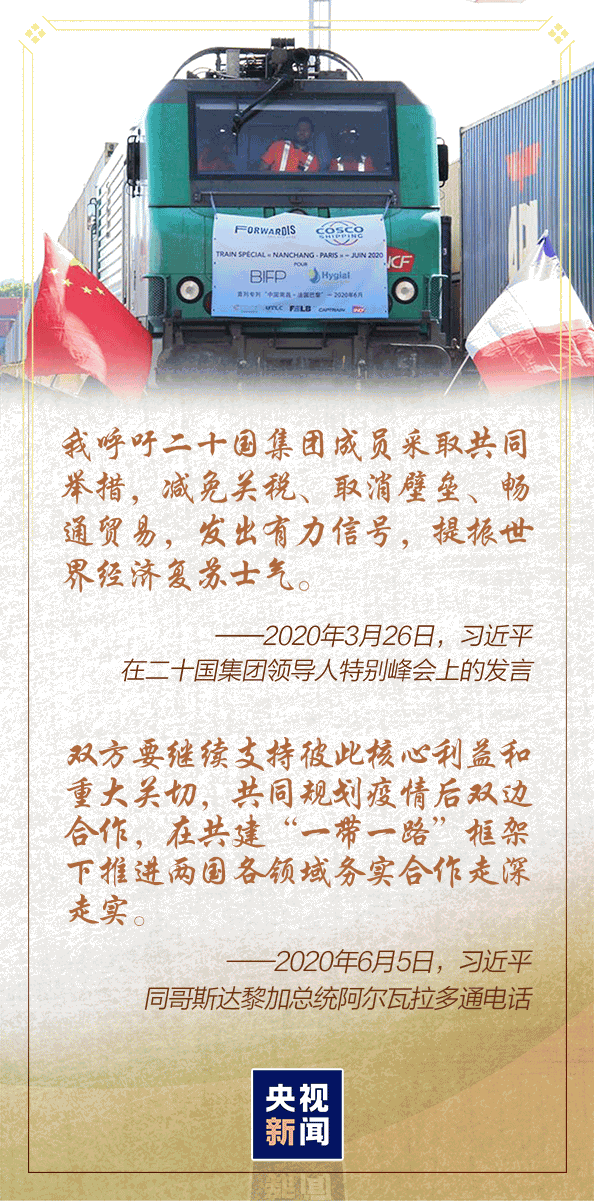 “中欧两大经济体应该发挥世界经济‘双引擎’作用,拉动世界经济复苏,共同支持科学有序复工复产,加强宏观经济政策协调,维护全球产业链供应链稳定通畅。” 6月22日晚,视频会见欧洲理事会主席米歇尔和欧盟委员会主席冯德莱恩时,习近平主席的表态为面临下行压力的世界经济注入信心。