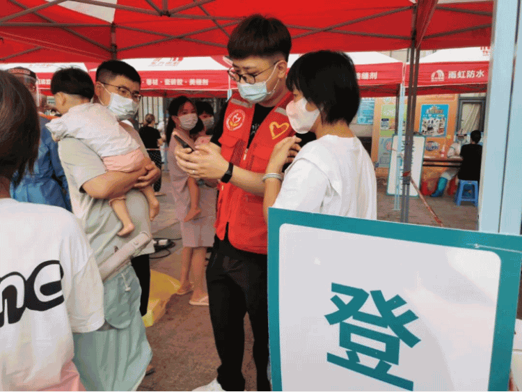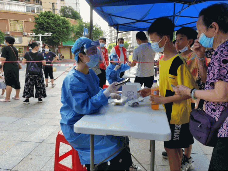 时值盛夏,上午10点多的太阳已经非常热,志愿者们连续工作了5个多小时,头发和衣服都湿透了。“穿着防护服为市民做信息登记,深刻体会到了医护人员的不容易,跟他们相比,我们这点累算不上什么,他们真的太伟大了!”志愿者黄嘉敏感慨道。