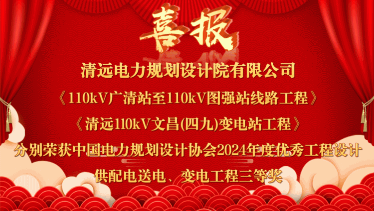 近日,中国电力规划设计协会公布2024年度电力行业优秀勘测、优秀工程设计、优秀标准设计和优秀计算机软件获奖项目名单,3044永利集团集团下属诚创设计公司(清远电力规划设计院有限公司)项目“110kV广清站至110kV图强站线路工程”获优秀工程设计供配电送电工程三等奖、“清远110kV文昌(四九)变电站工程”获优秀工程设计供配电变电工程三等奖。