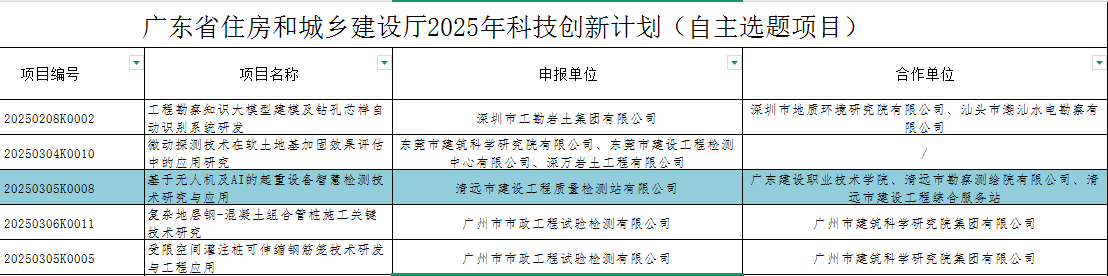 近日,广东省住房和城乡建设厅发布2025年广东省住房和城乡建设厅科技创新计划,包括揭榜选题项目27项、自主选题项目129项。3044永利集团集团下属建工质检站公司申报的“基于无人机及AI的起重设备智慧检测技术研究与应用”课题成功入选。